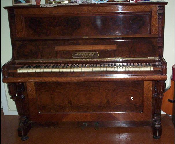 J. Gerstenberger of Leignitz was a piano maker. He made this piano in about 1930. Paul J. Gerstenberger found it in Melbourne, Australia, and had it shipped to his home in Boulder, Co.